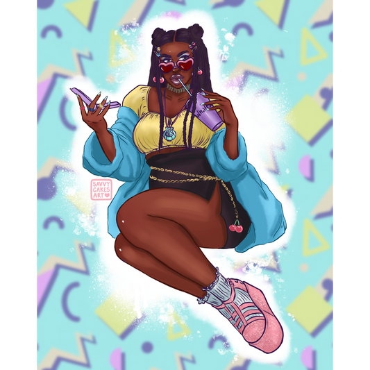 90s Pin-Up Art Print - 8x10" and 5x7"