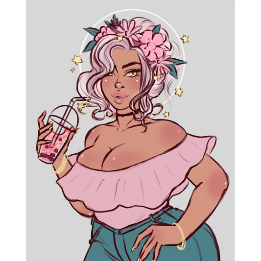 Fruity Girlfriends Pin-Up Art Print - 8"x8"