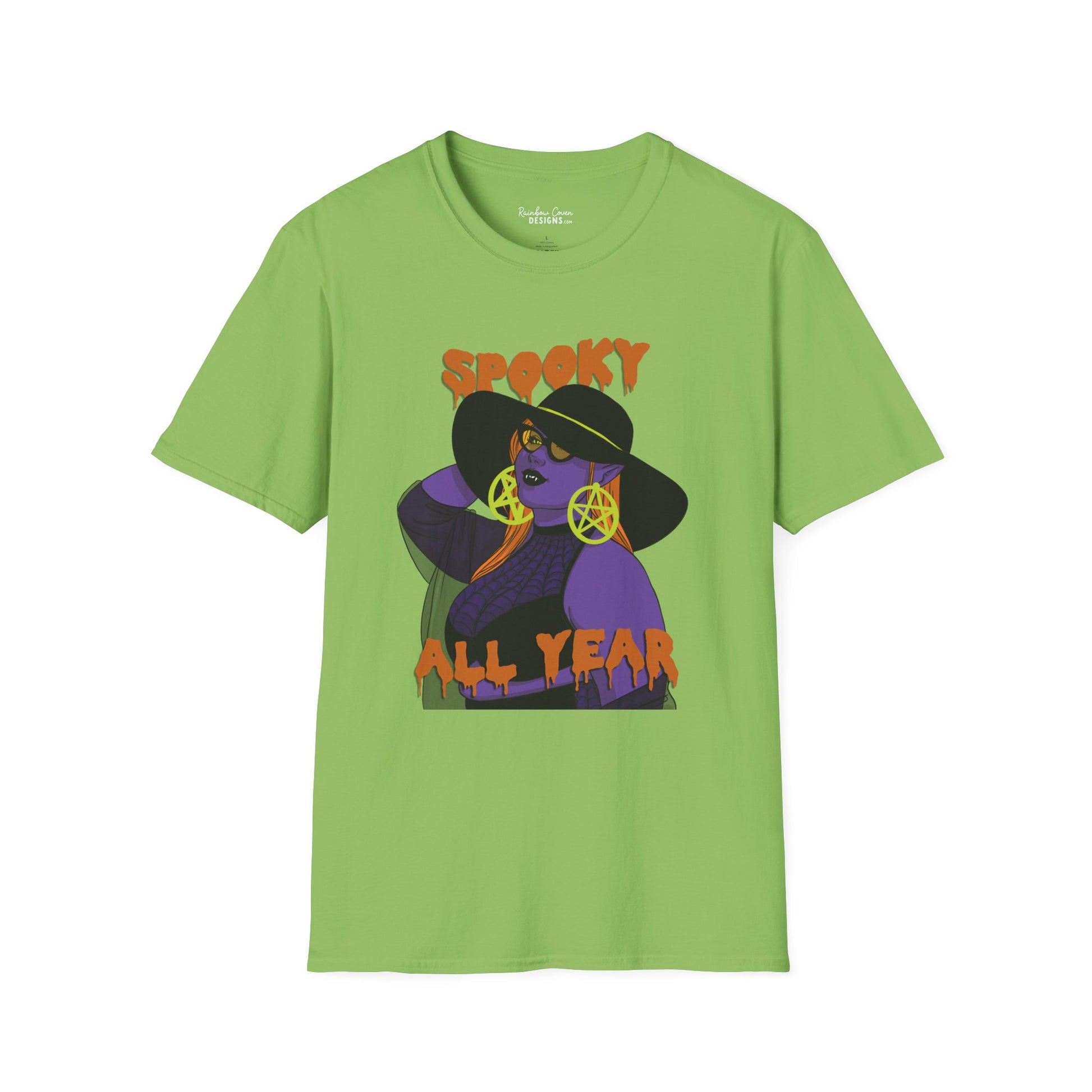 This unisex softstyle t-shirt is for the witches, weirdos, and everyday ghouls who know that Halloween lives in our bones all year long. Featuring my original art of a purple vampire babe enjoying the summer heat, this tee is soft, breathable, and ready for anything—from haunted house hangs to pumpkin patch strolls to lounging on your crypt couch with a cozy cup of tea.
